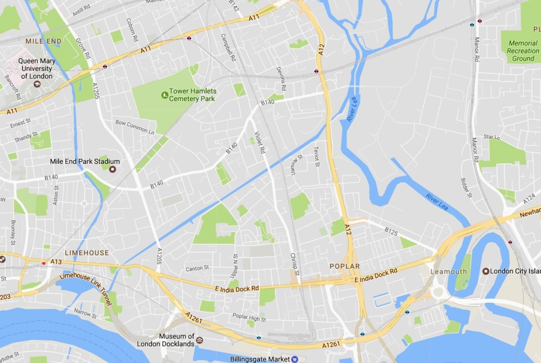 We are looking down from the road bridge that takes Twelvetrees Crescent over the River Lea and Bow Creek. It’s a delightful spot, to be found at the top right end of the Limehouse Cut. On the right, we see the Limehouse Cut about to make its bee-line for the Limehouse Basin. And on the left, the River Lea is about to wend its very winding way down to the River. Where the Lea empties itself into the Thames is right near where I took these fish photos.