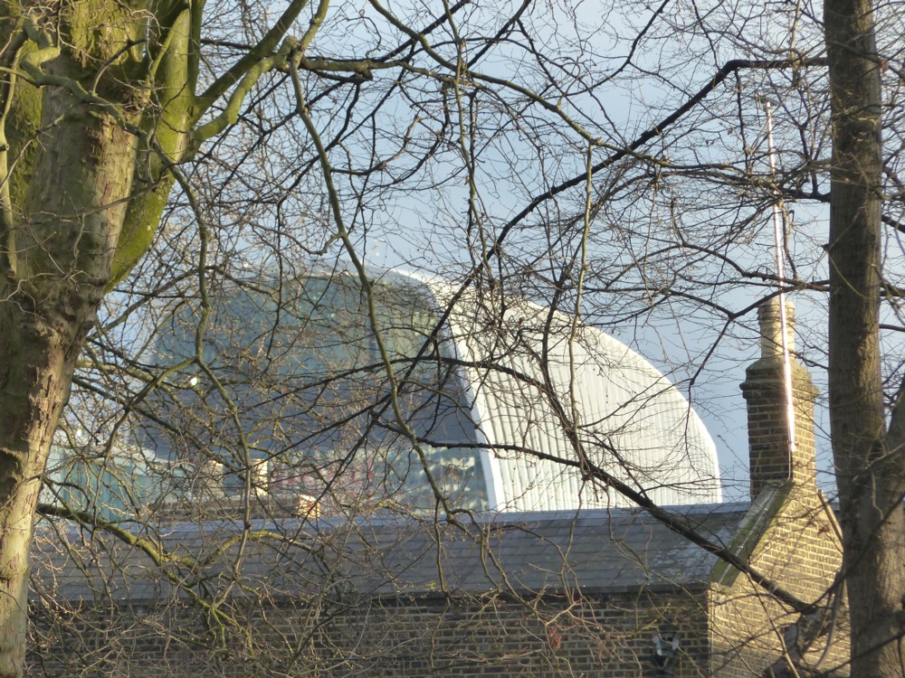 This afternoon I checked out London Fields, hoping for views of Big Things. But the clearest Big Thing views I got from the trip were taken from London Fields Overground Station. This is because London Fields Overground Station is, to coin a phrase, overground. It’s at roof level rather than ground level. London Fields, on the other hand, is a collection of fields, with lots of trees everywhere.