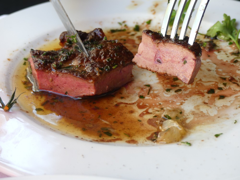 This photo was an afterthought, but that helped because I photoed the food while it was being eaten rather than before we started, which worked out better, I think. And it tasted even better than it looked. It’s liver of some kind, and it didn’t come cheap, but boy was it tasty, and it kept us fueled for the rest of the day.