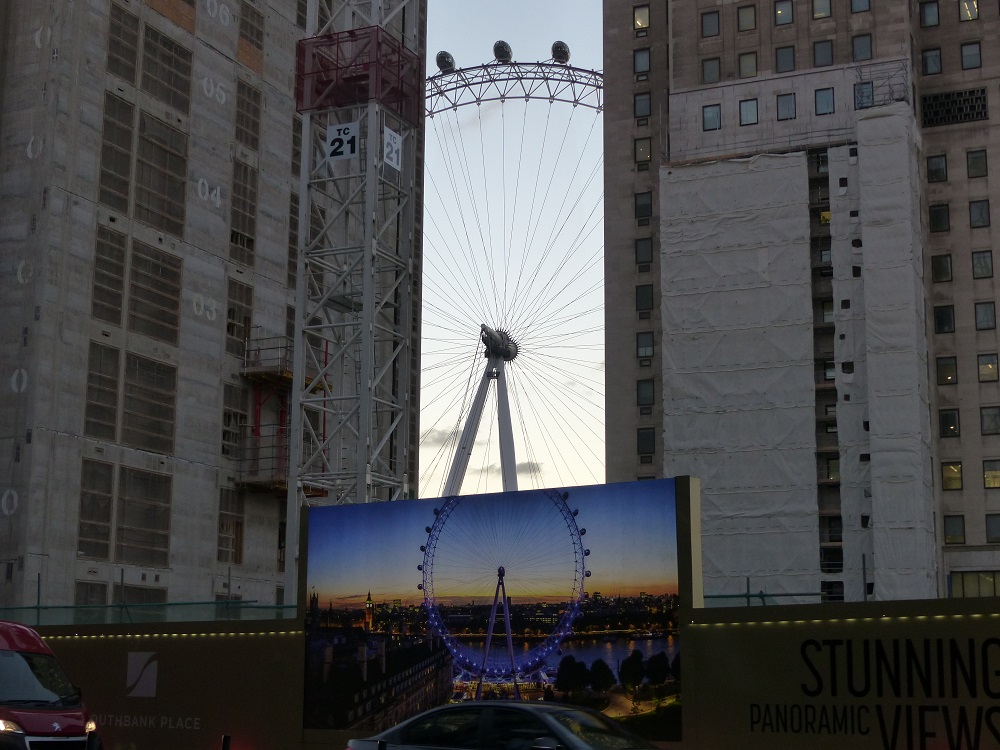 I really like this photo I took, a couple of years ago; of a poster featuring the Wheel with its top sliced off; and behind it the actual top of the actual Wheel