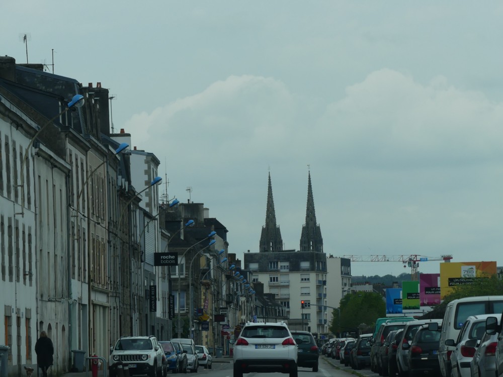 That was my first view, again, this time around, of Quimper Cathedral, seen through the rather sunglassesy front window of my hosts’ car, on what was already quite a dreary afternoon, the day after I arrived, Sunday April 29th. Quimper Cathedral â to be more exact, one of its towers - was responsible for the timing of this visit. I’ll tell you more about that in a later posting.