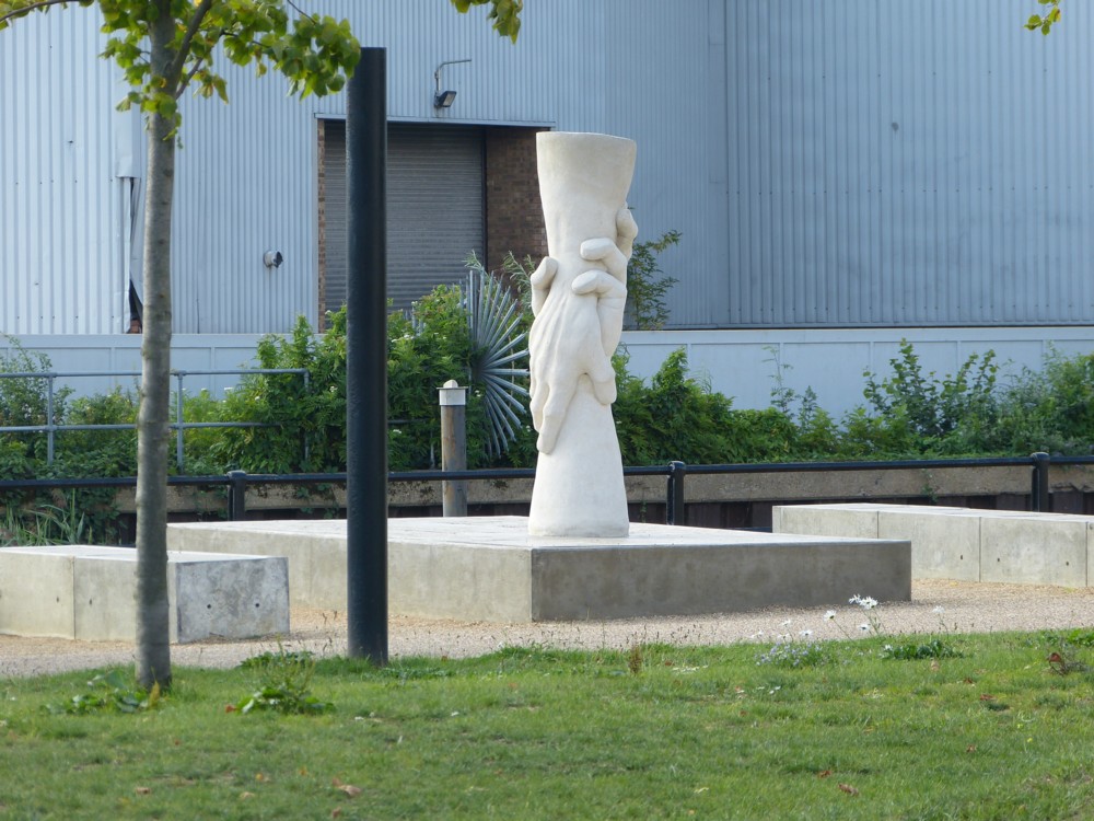 Happily, this is the twenty first century, and a little descriptive googling ("sculpture clasped hands” or some such thing) got me to places like this, which tell the story. And it’s quite a story.