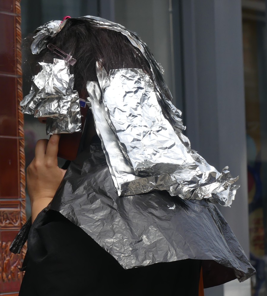 So, as I was saying, two days ago was the last day of the Heatwave, and maybe it was this heat which cause this lady to be wearing, in a street near me, this headgear: