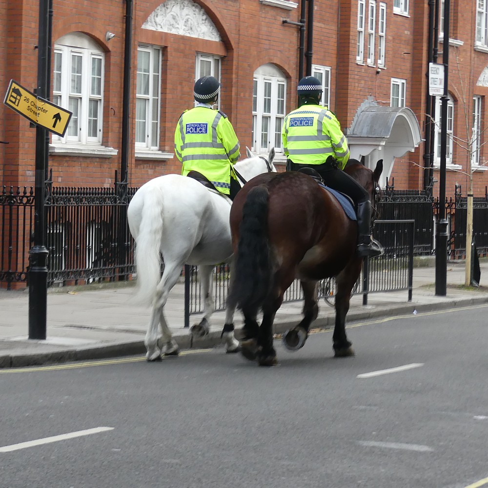 Police horses and their riders are often to be seen in the SW1 part of London, presumably just getting exercise in between riot situations.