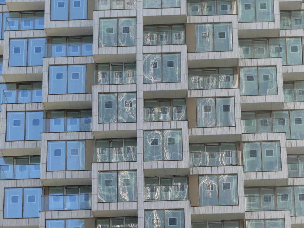 But now, it seems to me that I was photoing another sort of answer to the problem that these flat-dwellers now have. Could the glass windows be replaced by glass that is more reflective of light, while still letting the outside view in? Or, could the existing windows have some sort of plastic film or sheet stuck on them, preferably on the inside but maybe on the outside, that would contrive the same effect?