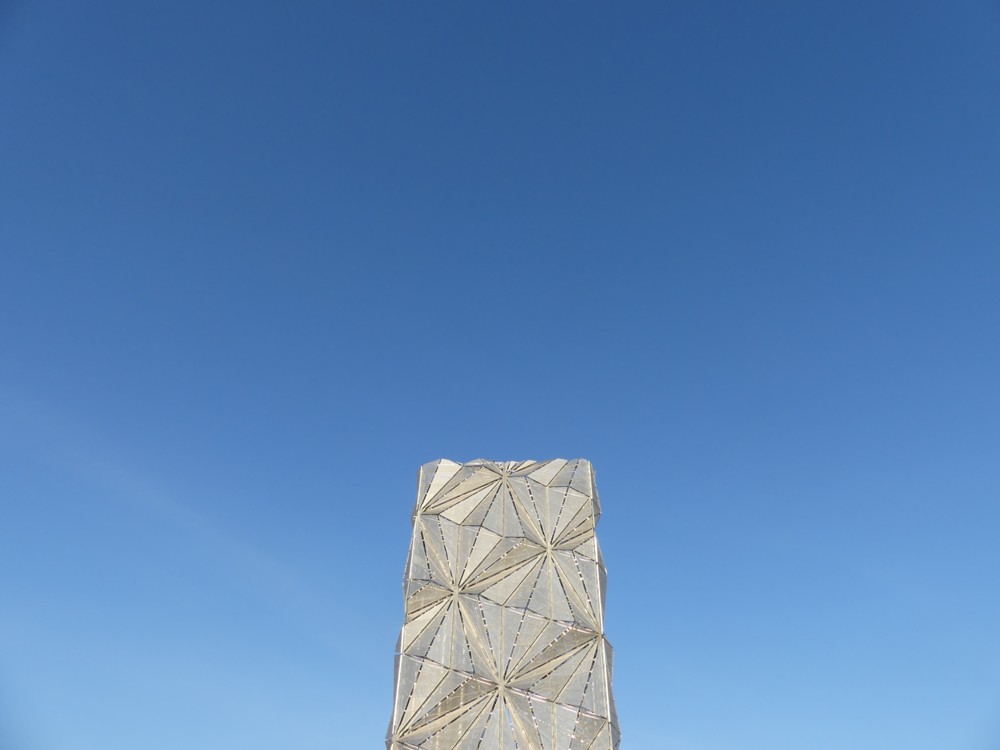 I don’t really know why I like this thing so much, but I surmise that part of it may be that it contrasts itself with the surrounding banal architectural rectangularities not by being completely different, but by being more subtly different. Sculpture often seeks separation from its urban surroundings by going totally curvey. No straight lines at all, except maybe in the form of a flat plinth. This Thing stands out too, but in a more dignified and respectful way.